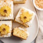 • Crushed pineapples in juice: Make sure they’re not drained because the juice adds moisture that keeps the cake tender and flavorful.