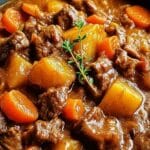 The best way I’ve found to reheat leftover stew is gently on the stovetop over low to medium heat. Stir occasionally and add a splash of beef broth or water if it thickens too much. This keeps the beef tender and prevents the vegetables from breaking down.