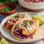 Warm your tortillas until soft and pliable (I like to char them a little on a dry skillet for extra flavor). Layer each tortilla with a few pieces of your crispy fried fish, a generous scoop of the fresh slaw, and a drizzle of the creamy sauce. Finish with a little more chopped cilantro and a squeeze of lime. It’s as simple as that and trust me, your kitchen will smell like a little slice of Baja heaven.