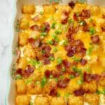 If you’re bringing this to a party, I’ve had fun turning this into individual portions using muffin tins for perfectly sized tater tot cups. It’s a crowd-pleaser and makes serving a breeze! Another idea: layer it in clear glass dishes so guests can see all those delicious layers.