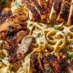 Freezing this recipe isn’t ideal because cream sauces can split after thawing, but if you want to freeze, I recommend freezing the chicken and cooked pasta separately from the sauce. Thaw gently and reheat slowly to reduce curdling.