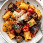 Yes, by simply omitting the Parmesan or swapping it for a vegan cheese alternative or nutritional yeast, this Eggplant and Fresh Tomato Pasta Recipe is fully vegan friendly without losing any of the deliciousness.