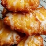 While the fritters cool slightly, mix powdered sugar, milk or cream, and vanilla extract in a small bowl until smooth and pourable. Drizzle this glaze generously over warm fritters — the shine and extra sweetness add an irresistible finishing touch that makes these truly melt in your mouth.