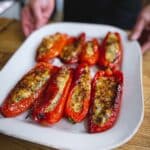 Absolutely! While long, slim bell peppers are traditional and hold the filling nicely, you can use any bell pepper variety. Just make sure they’re large enough to stuff and can stand upright in your baking dish. If using smaller peppers like mini bell peppers, consider halving them or adjusting the filling amounts.