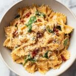 I store leftover Marry Me Chicken Pasta in an airtight container in the fridge for up to 3 days. The sauce might thicken as it chills, but that’s easy to fix when reheating by stirring in a splash of cream or broth.