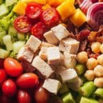 McCarthy Chopped Salad is a vibrant, protein-packed salad featuring a variety of fresh and roasted vegetables, grilled chicken, sharp cheddar cheese, and a zesty homemade dressing. This salad combines crunchy romaine, sweet baby cherry tomatoes, earthy red beets, creamy avocado, and crispy bacon, dressed with a tangy lemon-garlic vinaigrette for a flavorful and satisfying meal.