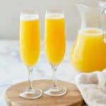 It’s best to mix Mimosas right before serving to keep the bubbles lively and fresh. You can prep your orange juice and chill your sparkling wine ahead of time, though, to make the assembly super quick when guests arrive.