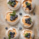 These Mini Meringues with Lemon Curd are delicate, crisp meringue shells filled with a zesty and creamy ginger-citrus lemon curd. Topped with fresh berries and mint, this bright and refreshing dessert is perfect for a light, elegant treat that balances tangy citrus with sweet crunch.