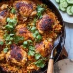 This one-pot paprika chicken and rice recipe combines tender, bone-in chicken thighs with fragrant spices and perfectly cooked rice, creating a deliciously comforting meal. Enhanced by a fresh cucumber salad with a zesty lemon and sour cream dressing, this dish offers a balanced blend of smoky, savory, and fresh flavors, all prepared in a single pot for easy cleanup.