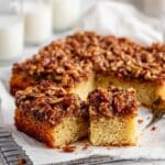 I find reheating individual slices in a 300°F oven for 10 minutes revives the cake perfectly—warm, soft, and with that slightly gooey pecan topping. Avoid the microwave if you want to maintain the crisp texture on top.