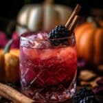 This Poisoned Apple Cider cocktail offers a perfect blend of sweet and tart flavors, with the warmth of dark rum, the fruity depth of blackberry liqueur, and a refreshing splash of lemon juice. Garnished with blackberries and a cinnamon stick, this drink is ideal for cozy fall evenings or festive gatherings.
