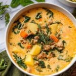 This hearty Sausage Potato Soup combines spicy Italian sausage with tender potatoes, vegetables, and a creamy broth flavored with garlic, tomato paste, and Italian seasoning. Perfect for a comforting meal, the addition of spinach or kale adds a nutritious touch while fresh herbs enhance the aroma and presentation.