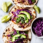 - Shredded red cabbage: Fresh and crisp, it adds a nice crunch and a pop of color that brightens the tacos.