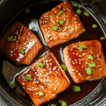 - Garnish and Serve: Carefully transfer the salmon to serving plates, spoon some glaze from the slow cooker over the top, and garnish with sliced green onions and a sprinkle of sesame seeds for added flavor and texture.