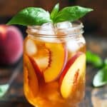 - Peach slices muddled in the tea: Crushing some peaches breaks down the fruit and intensifies the peach flavor, which is perfect if you want it even fruitier.