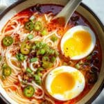 This Spicy Gochujang Noodle Soup is a flavorful, quick, and easy Korean-inspired dish perfect for a comforting meal in just 10 minutes. Featuring a spicy and tangy broth enriched with gochujang, garlic, and oyster sauce, it combines tender noodles, a soft boiled egg, and a sprinkle of sesame seeds and chili oil for added texture and heat.
