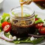 This Tangy Balsamic Vinaigrette is a simple and flavorful salad dressing combining the rich acidity of balsamic vinegar with the smoothness of extra virgin olive oil, balanced by Dijon mustard and a touch of honey or maple syrup for sweetness. Perfect for drizzling over greens, roasted vegetables, or as a marinade.